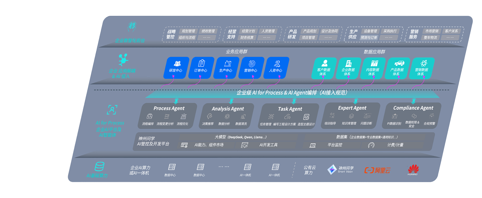 端到端的一站式AI工作空间深度融合了从企业战略规划到日常经营的全流程业务板块,,,,定向解决车企内部领域多、、、部门多、、链条长、、、场景碎片化等难题,,,,支持车企快速构建以AI为核心的生产力写作体系,,,,实现任务执行与AI能力的无缝集成与交互